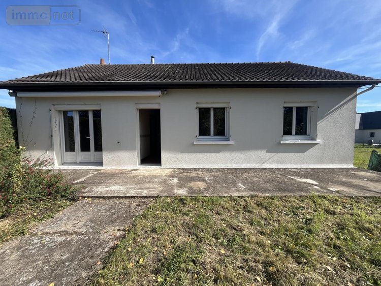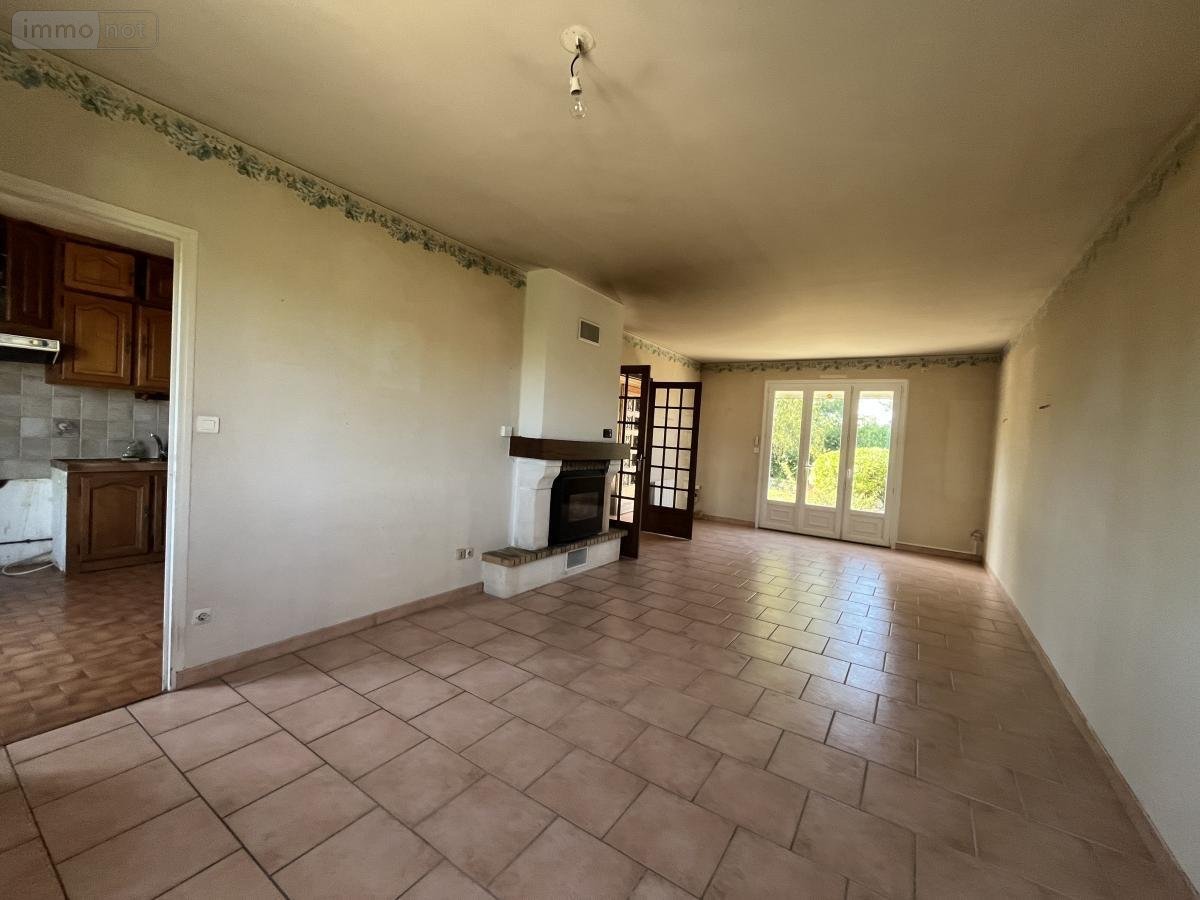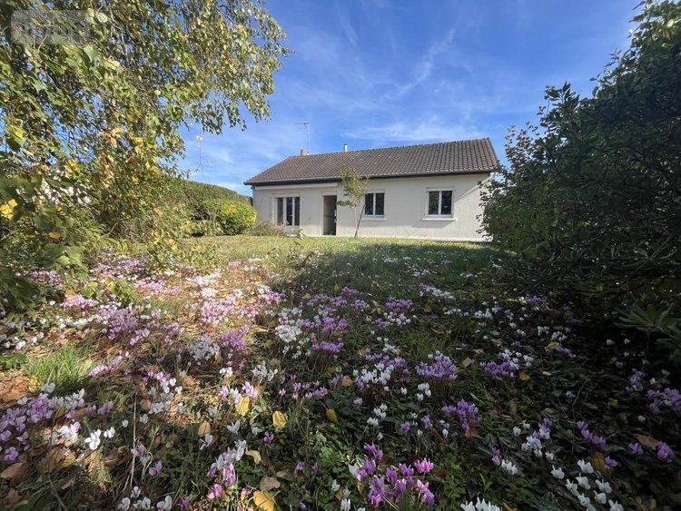 Pavillon lumineux édifié sur plus de 1700 m² de terrain habitable de plain-pied comprenant : entrée, séjour avec insert à granulés, cuisine avec balcon, couloir, trois chambres, salle d'eau, wc.