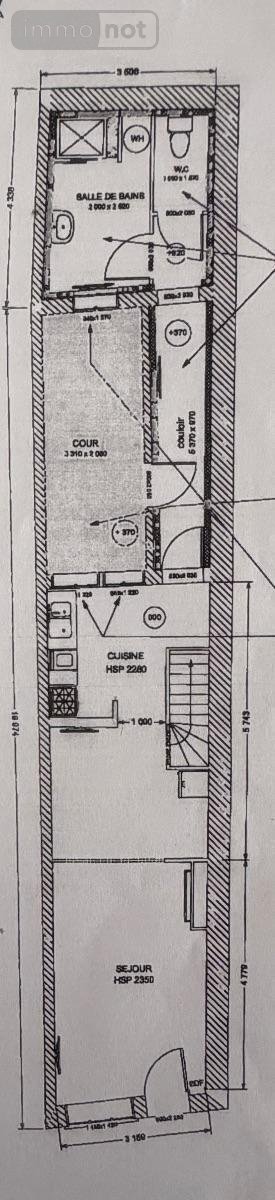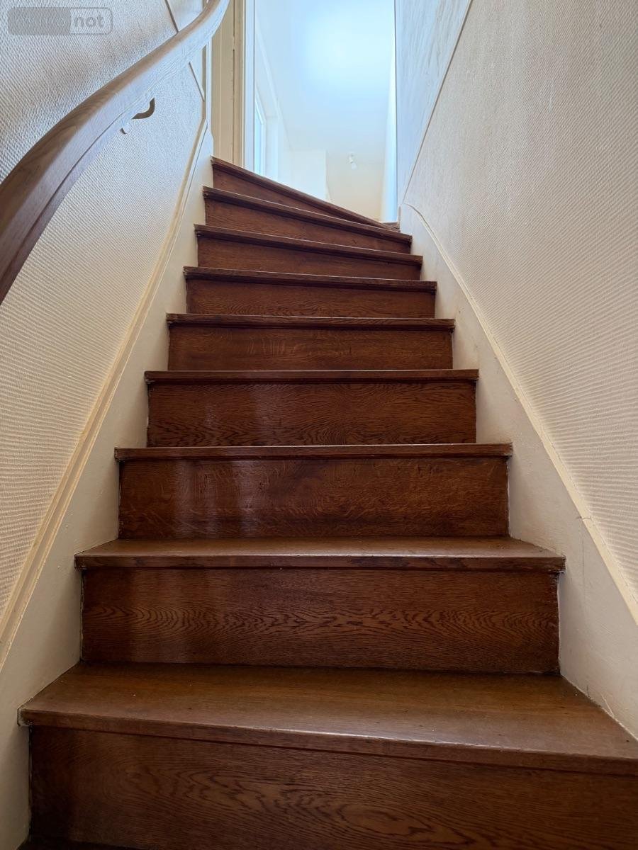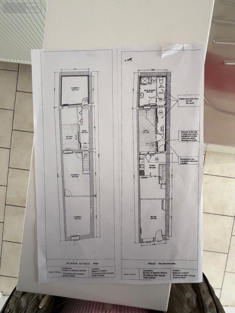 Séjour, cuisine indépendante, salle de bains au rez-de-chaussée. Trois chambres à l'étage.