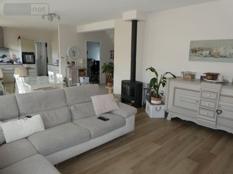Chauffage par : plancher chauffant et poêle à bois au rdc et radiateurs à l'étage.