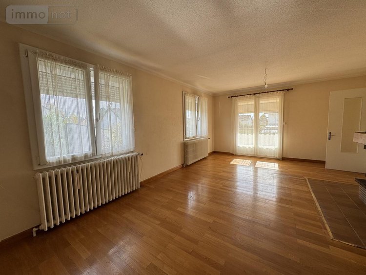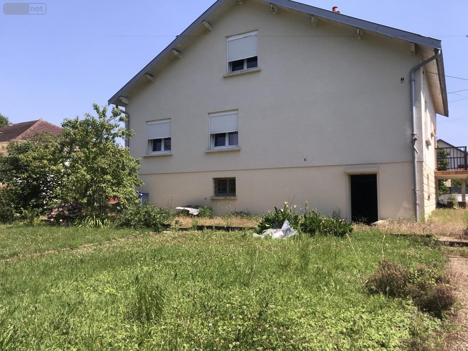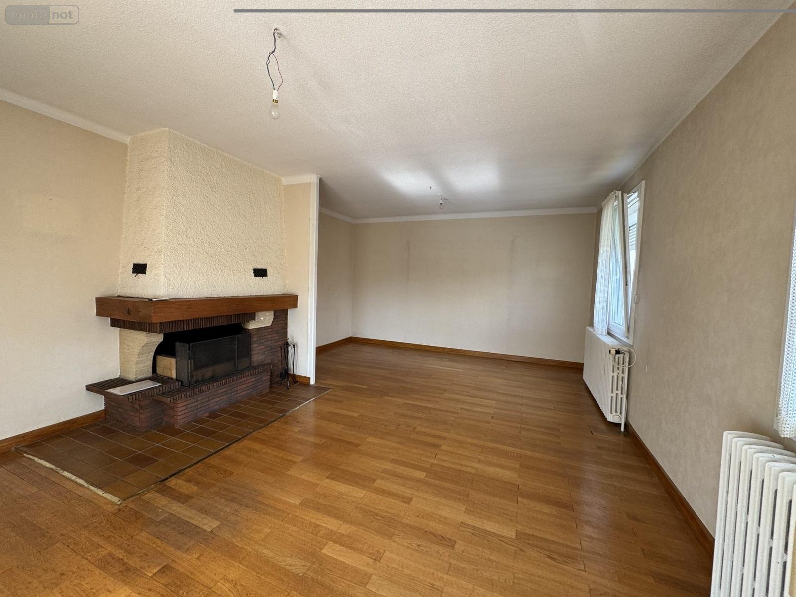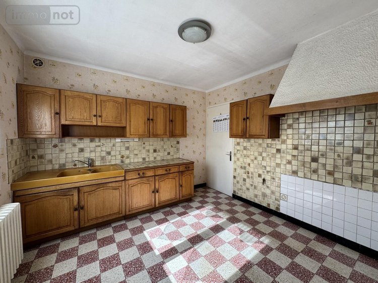 Maison sur sous-sol d'une superficie hab. de 92.5 m² située dans une impasse se composant : RDC : Garage, chaufferie, remise. Etage : entrée, cuisine, séjour-salon, trois chambres, salle d'eau, wc. Grenier (combles aménageables, ouvertures existantes).