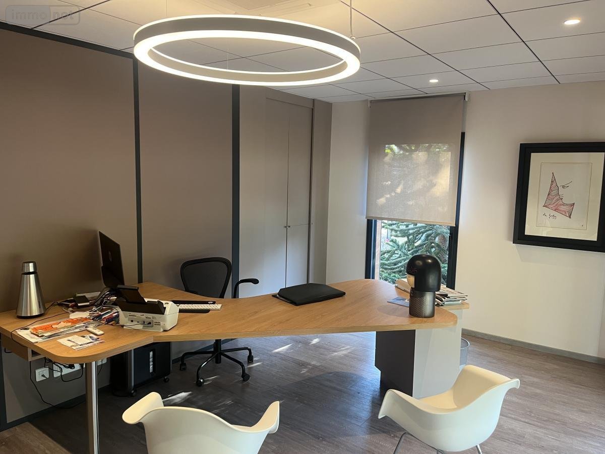 De plain-pied, il comprend un espace d'accueil, six bureaux, une salle de réunion, ainsi qu'une cuisine entièrement aménagée ouvrant sur une terrasse abritée par une pergola bioclimatique. Vous trouverez également une salle de bains, deux WC et un local technique.