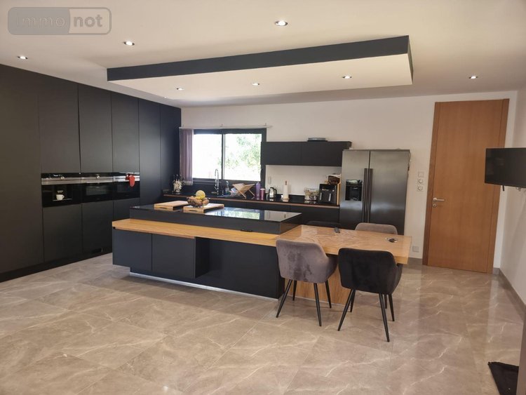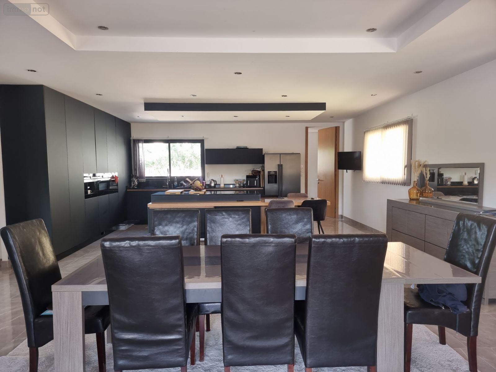 Maison contemporaine avec piscine, pool house et prestations de qualité - Terrain de 1 750 m². Dans un environnement paisible et résidentiel, venez découvrir cette belle maison de plain-pied d'environ 220 m², offrant de belles prestations et des volumes généreux, idéale pour une vie de famille confortable et conviviale. Dès l'entrée, vous serez séduits par un hall spacieux avec placards, menant à une pièce de vie lumineuse comprenant un vaste séjour-salon et une cuisine ouverte, aménagée et équipée (meubles hauts et bas, îlot central). Un espace parfaitement pensé pour recevoir.