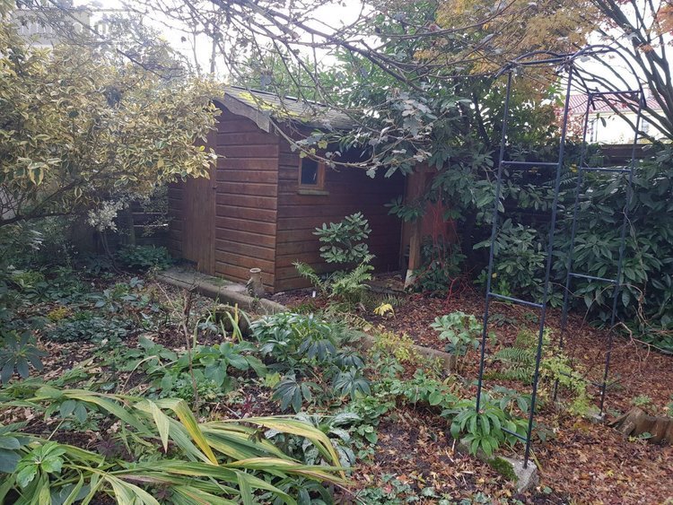 Deux garages attenants, un abri en bois, terrain clos à l'arrière.