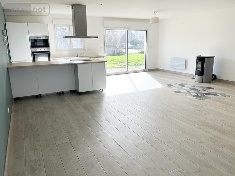 La cuisine aménagée et équipée est ouverte sur la pièce à vivre chaleureux avec son poêle à granulés est baignée de lumière grâce à sa grande baie vitrée et offre un beau volume, dans la continuité deux chambres dont une avec dressing, une salle d'eau, un WC avec un point d'eau.