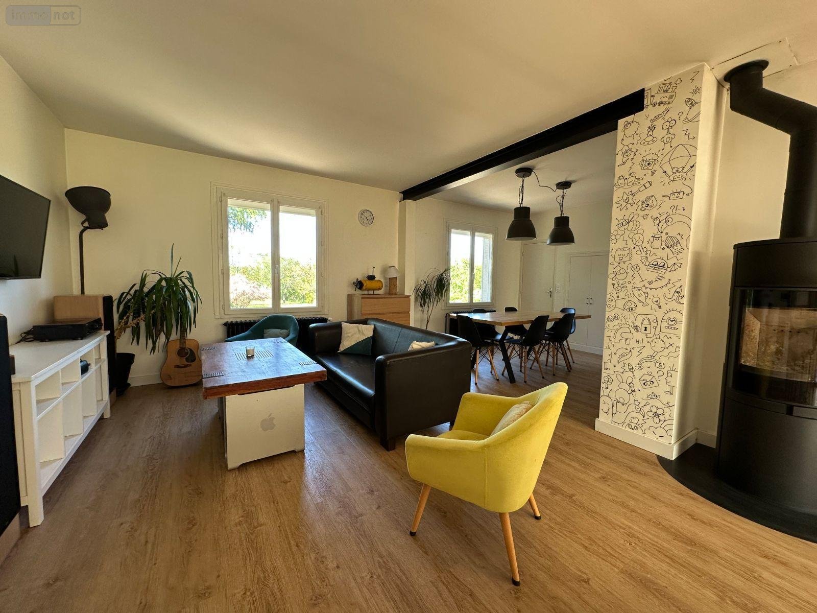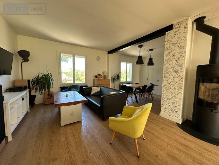 La maison, en grande partie rénovée, dispose d'une entrée avec placards, d'une pièce de vie de 45m² avec cuisine aménagée et équipée moderne, ouverte sur salon avec poele à bois et salle à manger, trois chambres parquetées d'environ 11m², une salle d'eau à terminer et wc séparés.