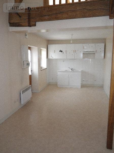 Maison à louer à SUEVRES en Loir et Cher (41500), au centre de la commune, dans une petite rue au calme proche de la Pharmacie, maison ancienne comprenant au rez de chaussée surélevé : pièce principale avec cuisine ouverte, dégagement, wc, salle d'eau. Chambre en mezzanine. Petite cour gravillonnée close de murs sans vis-à-vis, remise sous escalier. Possibilité de location en sus d'une grange attenante à usage de garage (2 emplacements ; loyer en supplément : 50 €/mois).