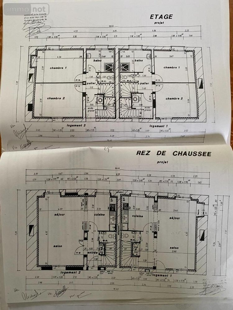 * Maison 2 à usage d'habitation comprenant: / au rdc: entrée avec placard, salon/ séjour/ cuisine (évier 2 bacs, chaudière gaz citerne), / au 1er étage: palier, deux chambres dont une avec placard, salle de douche (douche, lavabo colonne), espace laverie, grenier au dessus. Garage. Cour.