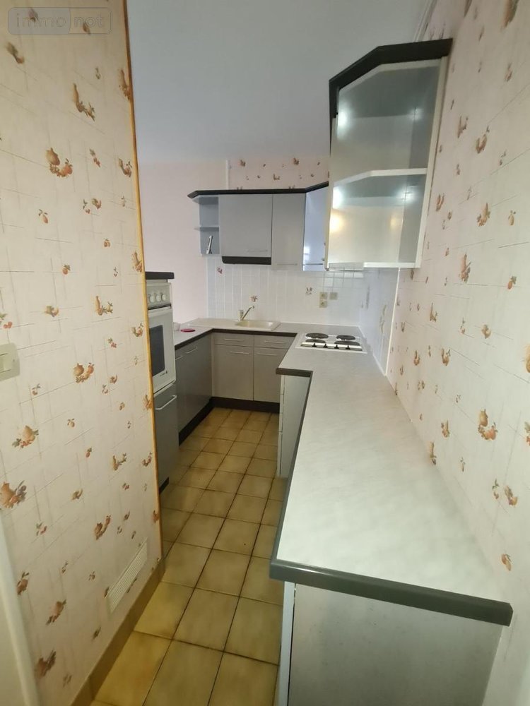 Appartement au 3ème étage avec ascenseur comprenant: entrée avec placard, cuisine aménagée et équipée (éléments hauts et bas, évier 1 bac, plaque électrique 4 feux, four), séjour, pièce à usage de chambre, salle d'eau (douche, meuble vasque, wc). Place de stationnement.