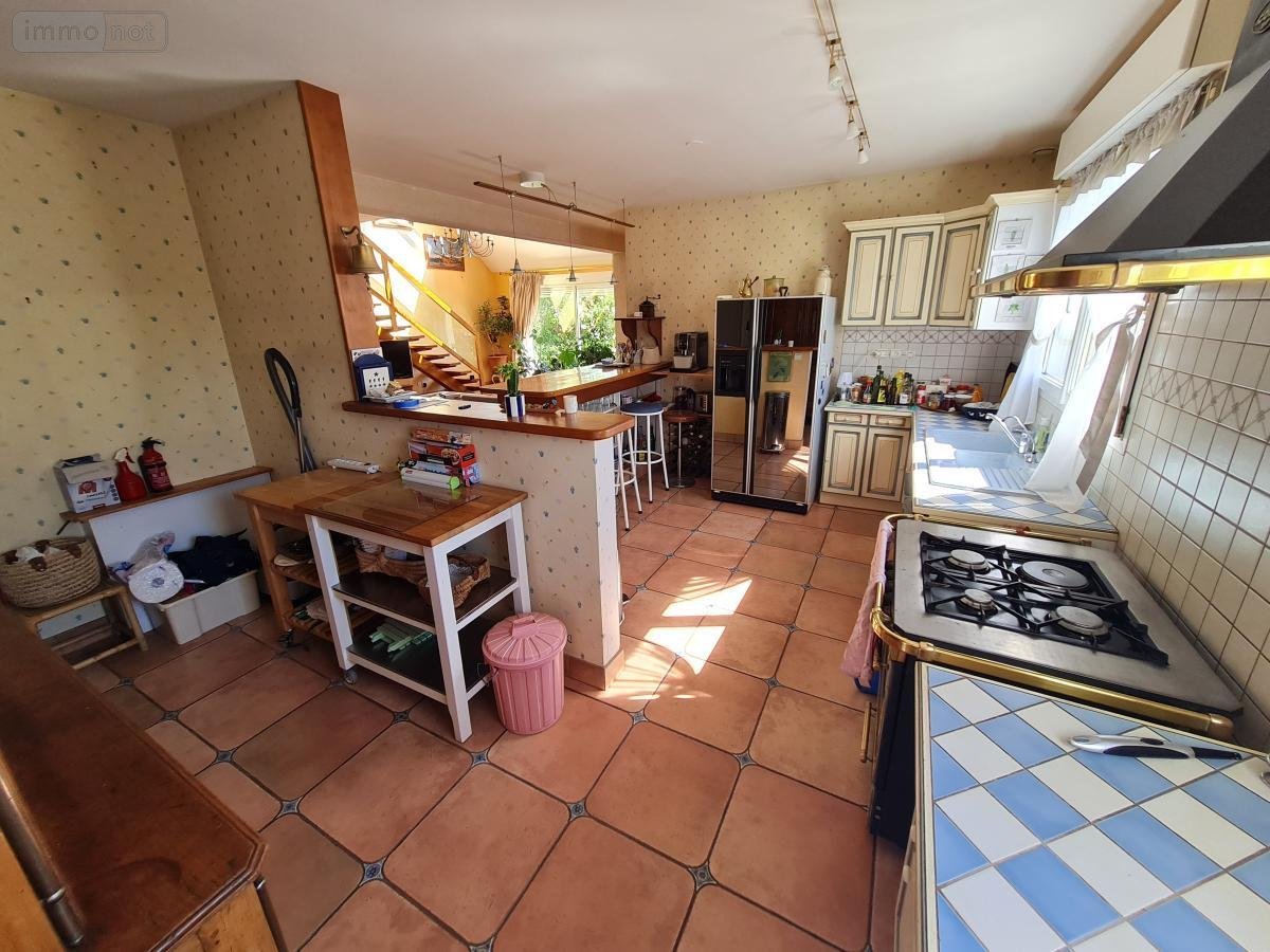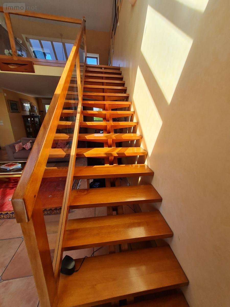 Maison à usage d'habitation comprenant: - au rdc: salon/ séjour donnant sur cuisine aménagée et équipée (éléments hauts et bas, hotte, évier 1.5 bac), dégagement avec placards et lavabo, wc, chambre avec salle de bains privative (baignoire, meuble double vasque, placard). - au 1er étage: mezzanine, trois chambres dont une avec terrasse, une avec placards, salle d'eau (douche, meuble vasque, wc). - au sous- sol: dégagement, chaufferie avec évier 1 bac, cave, garage pour deux véhicules, chambre, sas d'entrée. Terrasse. Bassin. Cour Gravillonnée. Jardin.