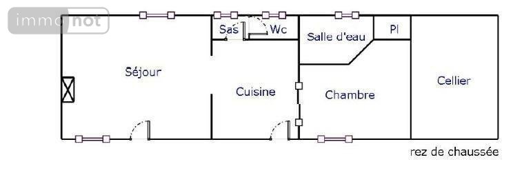 / au rdc: salon/ séjour avec cheminée insert, cuisine aménagée (meuble bas, évier 2 bacs), wc, lave- mains, chambre avec placard, salle de douche (lavabo, douche).