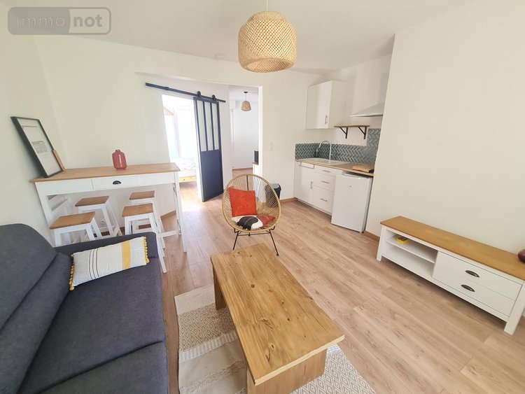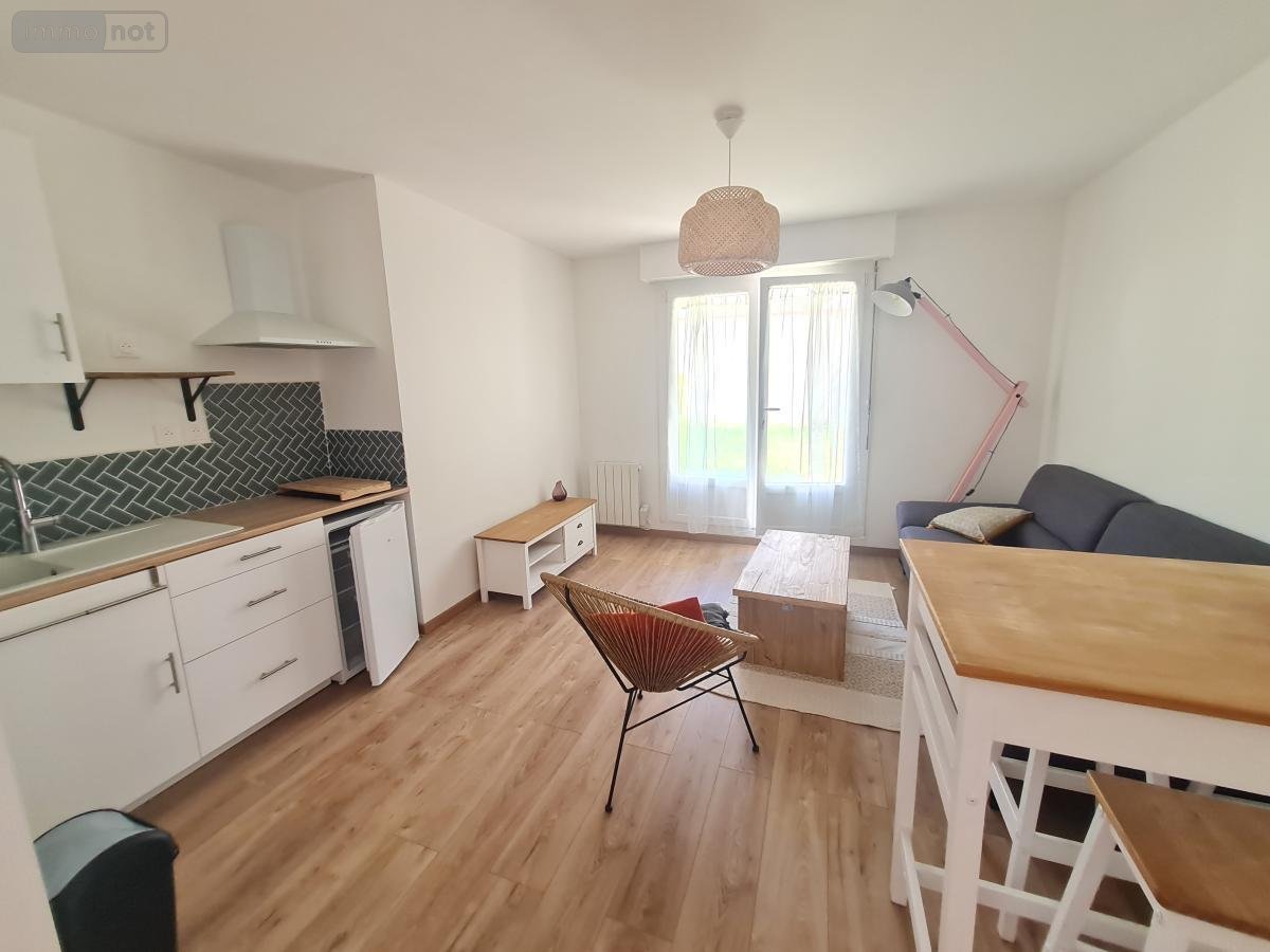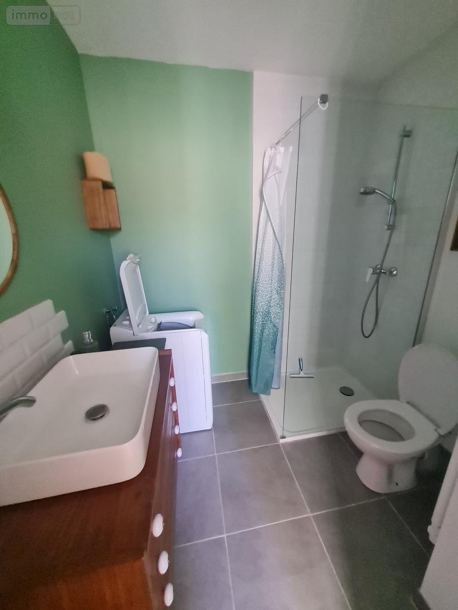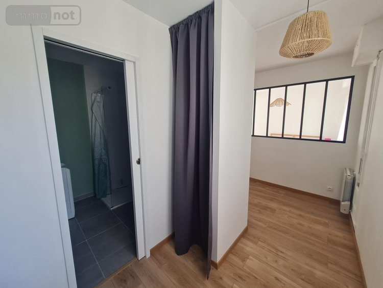 Appartement meublé au rez- de chaussée, à usage d'habitation comprenant: entrée, salle de douche ( douche, meuble vasque, wc), dégagement, chambre, séjour/ cuisine ( éléments hauts et bas, évier 1 bac, plaque induction, hotte). Jardin privatif.