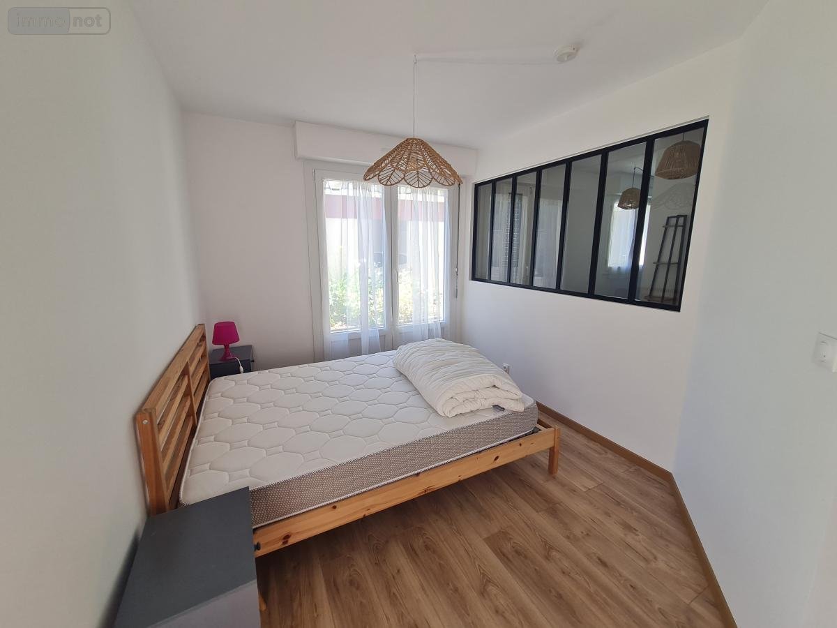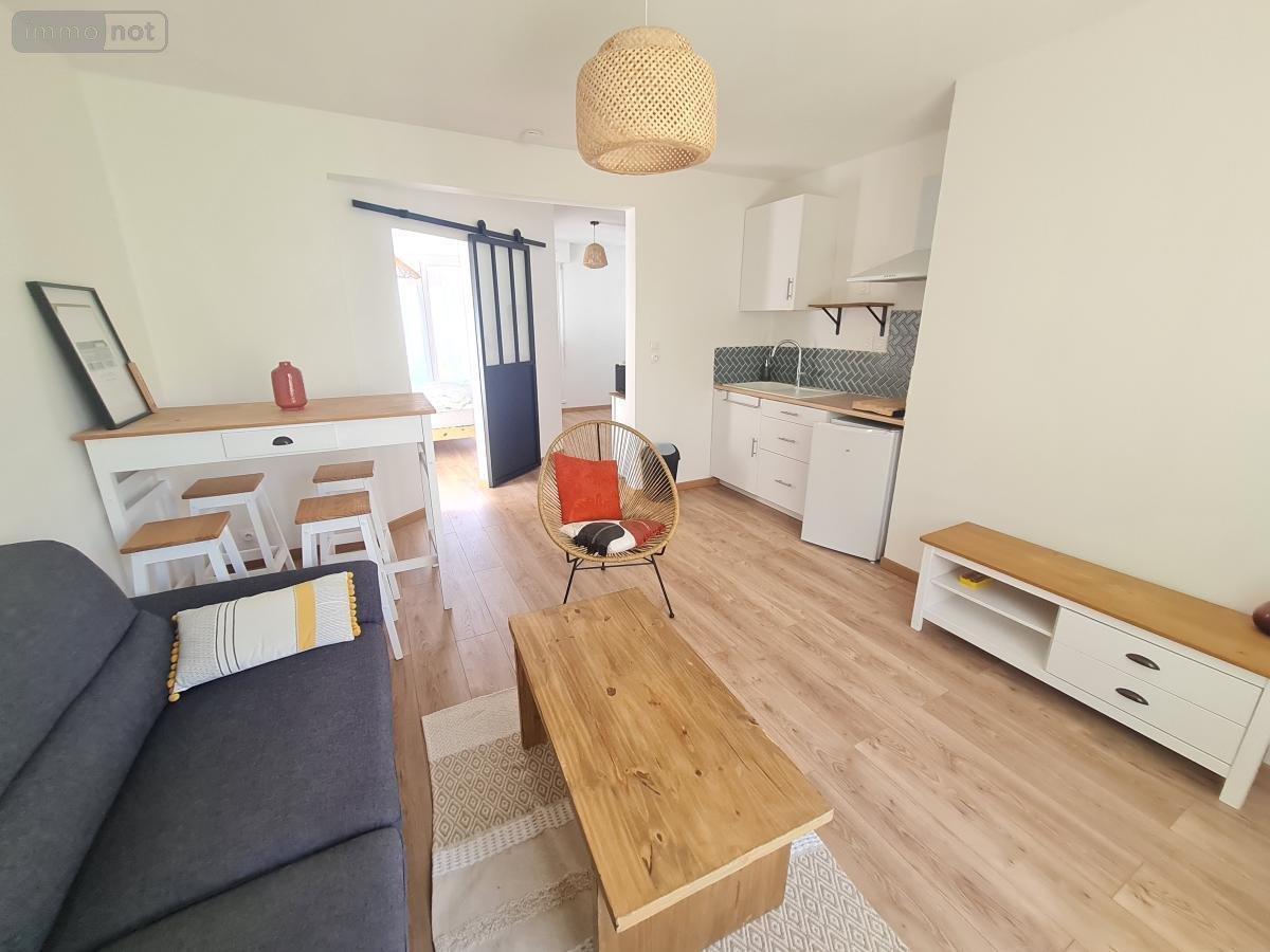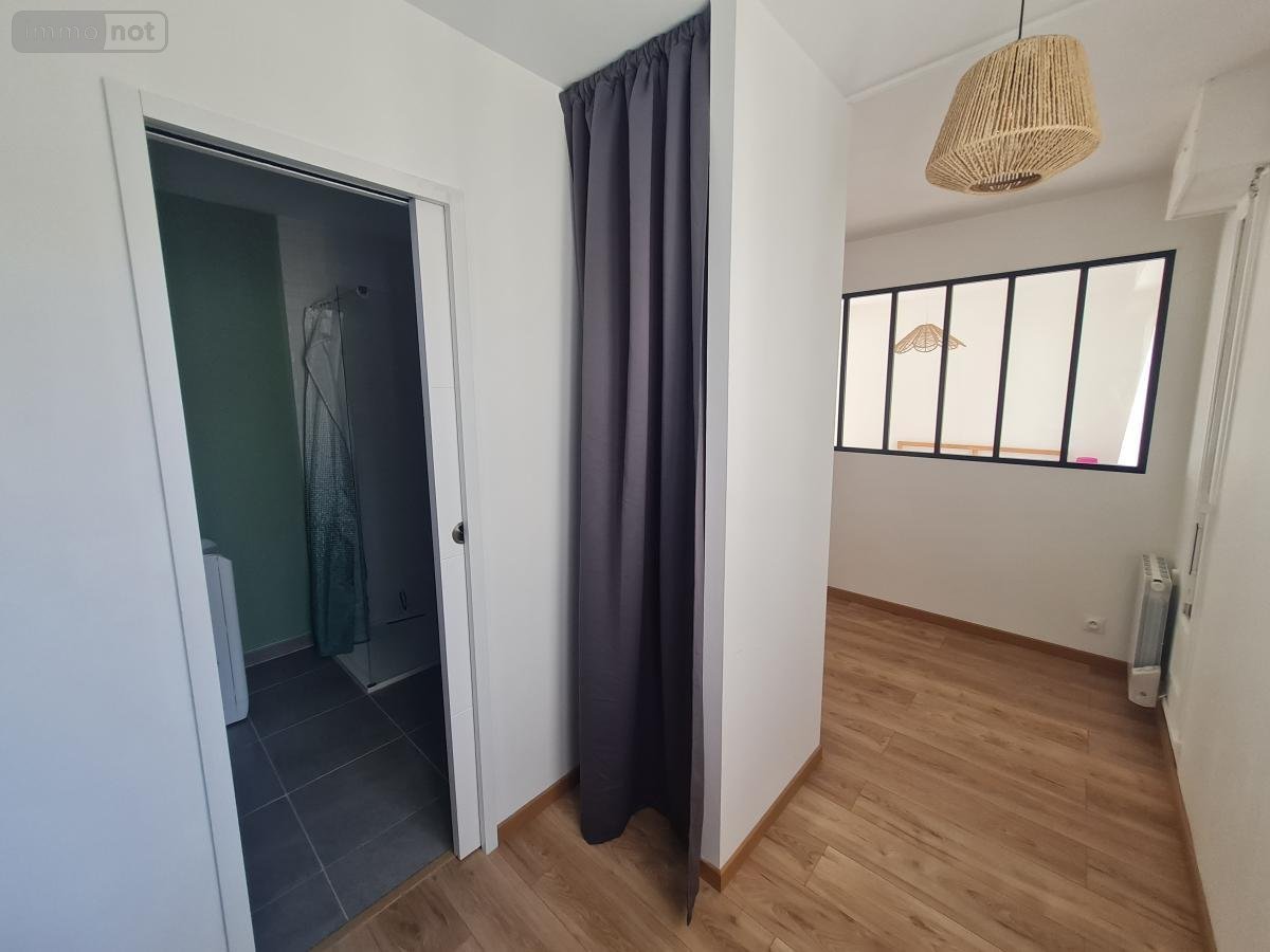 Appartement meublé au rez- de chaussée, à usage d'habitation comprenant: entrée, salle de douche ( douche, meuble vasque, wc), dégagement, chambre, séjour/ cuisine ( éléments hauts et bas, évier 1 bac, plaque induction, hotte). Jardin privatif.