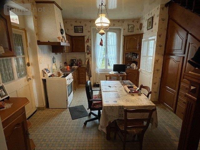 Dans le bourg, au calme, maison d'habitation sur terrain de 3 340 m². Rdc : entrée, cuisine, séjour-salon (cheminée), salle de bain, wc. A l'étage : 2 chambres, salle d'eau, 2 bureaux. Cave. Chauffage central gaz. Dépendances : 2 pièces, garage double, atelier; appentis. Cour, jardin, verger, bois.