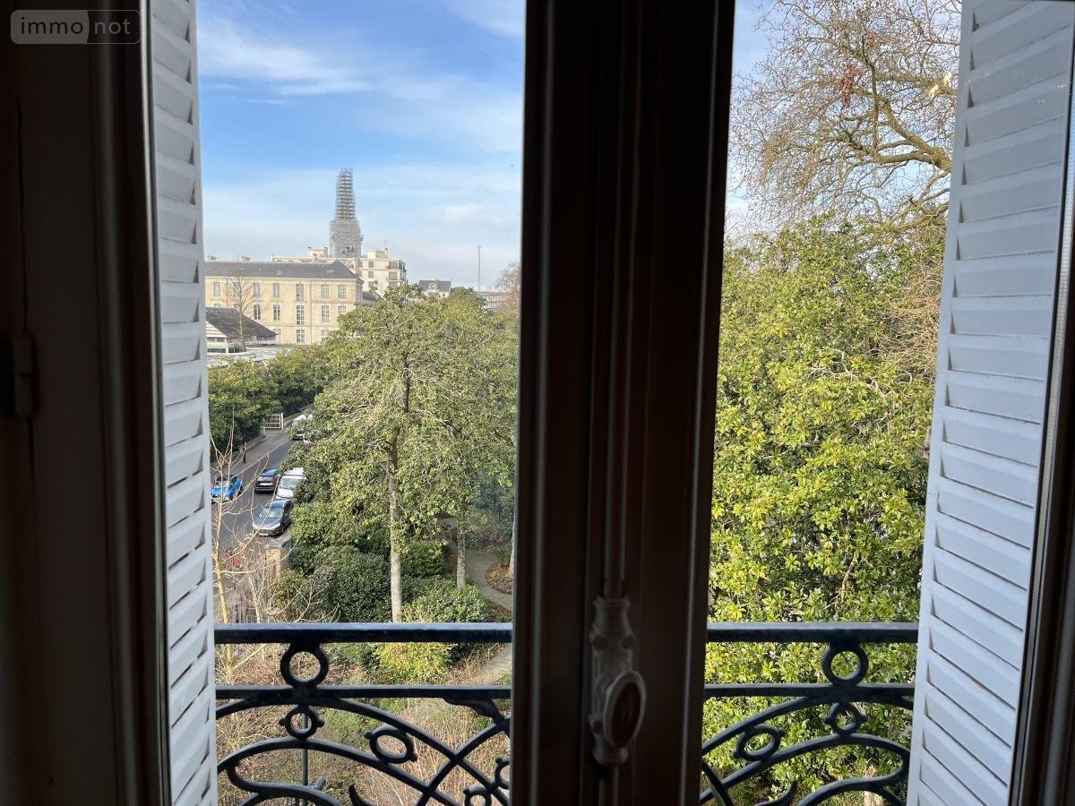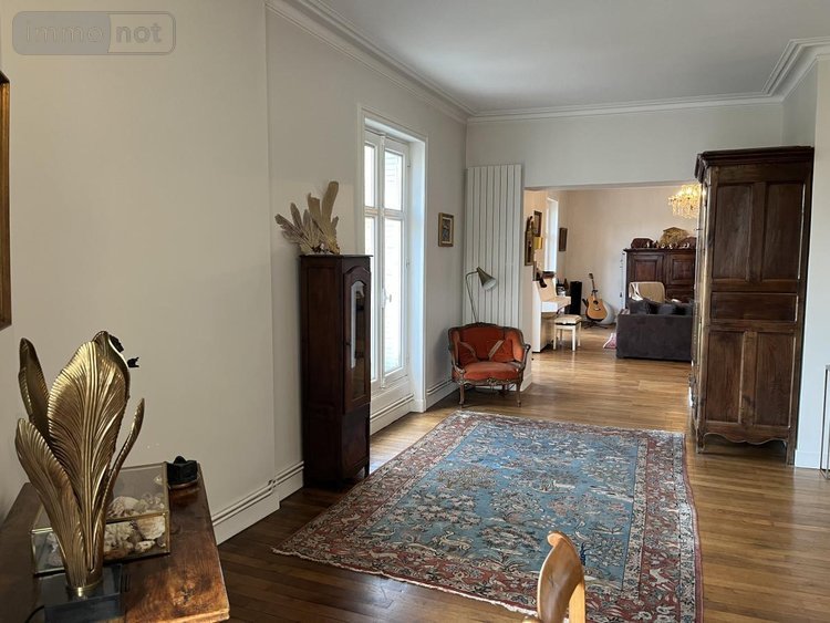 NANTES gare Nord, Jardin des plantes. Dans un immeuble ancien, au pied du jardin des plantes et au calme. Appartement de type 5 situé au 4ème étage avec ascenseur d'une surface carrez de 151,54 m², comprenant ; entrée et dégagement - Un Séjour de 32,01 m² et un Salon de 33,49 m² à la suite. Une Cuisine de 12,81 m². 3 chambres de 14,13 - 14,48 et 14,50 m². Placards et lingerie. Autre dégagement et Salle de bains (baignoire et douche)- WC. 2 caves au sous-sol. Chauffage gaz. Beau volume. Vue sur le jardin des plantes et au calme.
