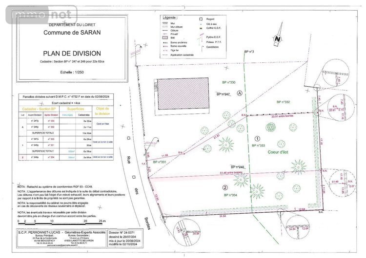 SARAN, Rue des Bordes, 2 terrains à bâtir de 659 m² - Lot N°1 du plan (BP 331 + BP 333) et de 584 m² - Lot N° 2 du plan (BP 334)