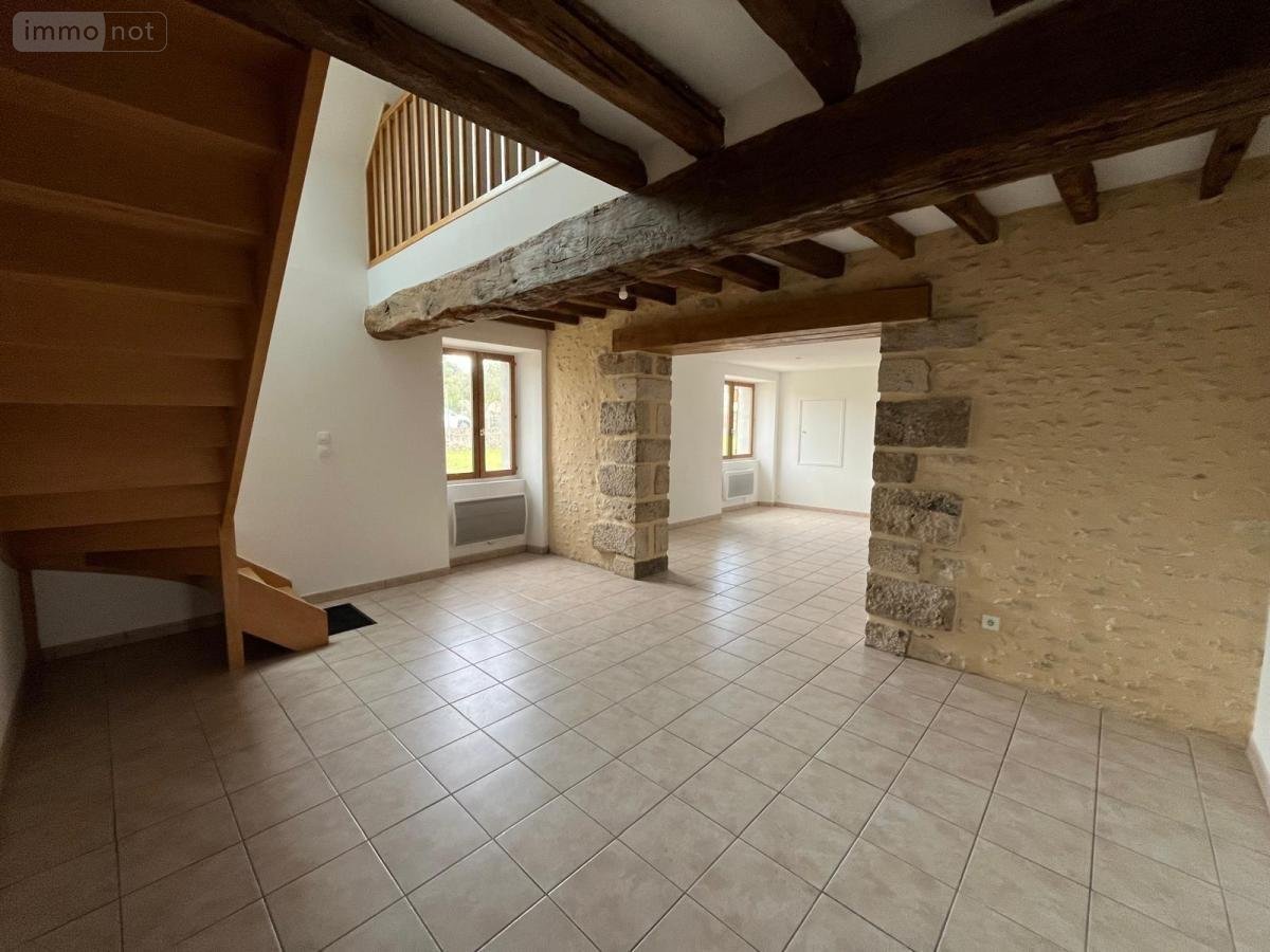 Description du bien : Rez-de-chaussée : entrée/séjour (21,86 m²) avec cuisine ouverte équipée et aménagée (11,6 m²), salle à manger (18,77 m²), une grande chambre (20,23 m²), salle de bains avec douche (8 m²). WC séparés. À l'étage : 2 chambres (9,22 m² et 9 m²), salle de bains avec WC (8 m²). Cave pour partie.