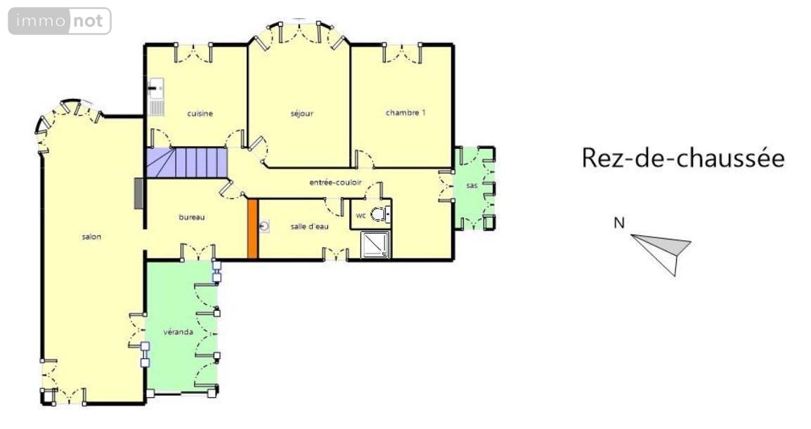 Elle se compose d'un sas d'entrée, d'un couloir central desservant un bureau traversant, un vaste double séjour (37 m²) avec cheminée, donnant sur une loggia plein sud, une grande terrasse carrelée et un jardin paysager. La cuisine est séparée, aménagée et équipée. Deux chambres parquetées (14 m² et 12,5 m² - dont une actuellement utilisée en salle à manger), une salle d'eau avec douche à l'italienne et WC complètent ce niveau.