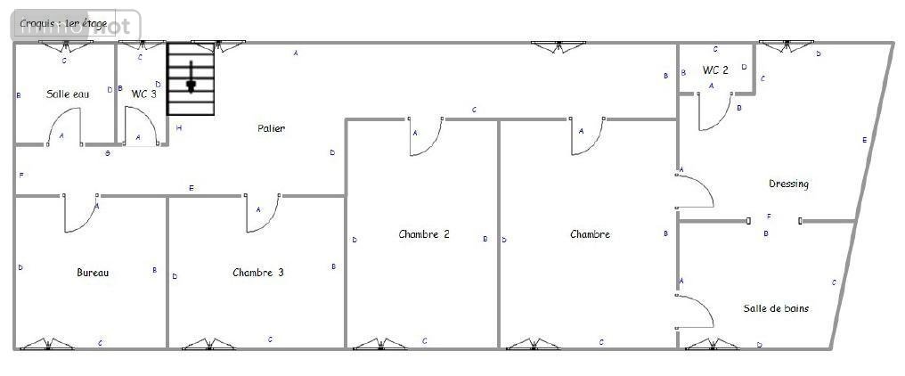 - A l'étage : couloir desservant, W.C, salle d'eau, 3 chambres (10,83 m², 9,87 m², 14,13 m²) et une suite parentale de 17,54 m² avec grand dressing de 15,57 m² et salle de bain avec douche de 7,49 m².