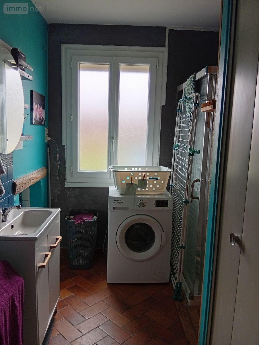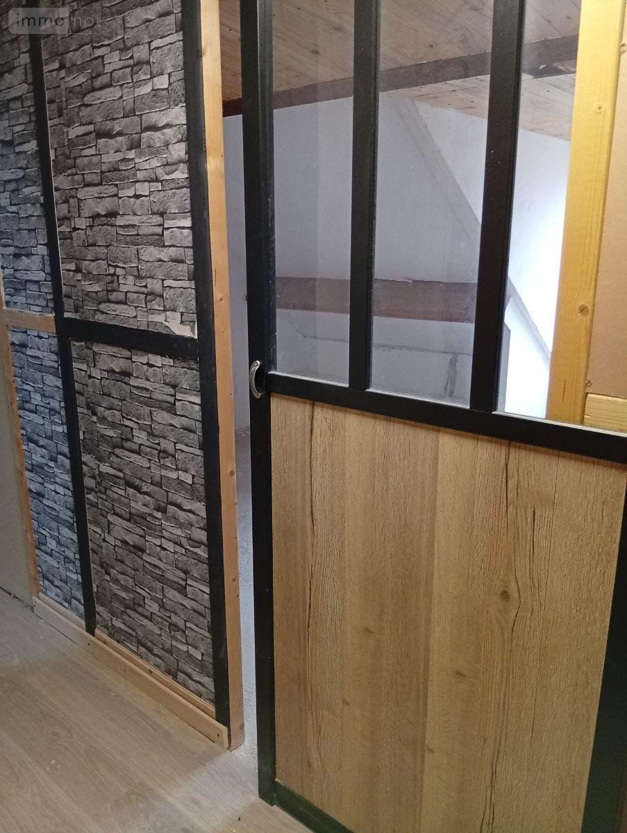 Pavillon sur vide sanitaire comprenant : entrée, séjour salon traversant avec cheminée insert (équipée d'un système de soufflerie pour chauffer toute la maison), cuisine aménagée, WC, salle d'eau avec placard, 2 chambres, garage (porte sectionnelle électrique) et atelier. A l'étage (en cours de finition ; fenêtres en double vitrage ancien, accès par escalier carrelé) : palier, 1 pièce non finie (chambre avec dressing) sur dalle béton, 1 pièce en façade (sol à faire) avec porte coulissante, salle de bains à finir (murs, sol, lavabo), 1 chambre.