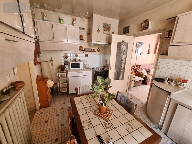 - Au rez-de-chaussée (en enfilade) : séjour, cuisine, dégagement avec placards, chambre, buanderie et salle d'eau avec wc. Attenant non communiquant trois pièces à usage de stockage.