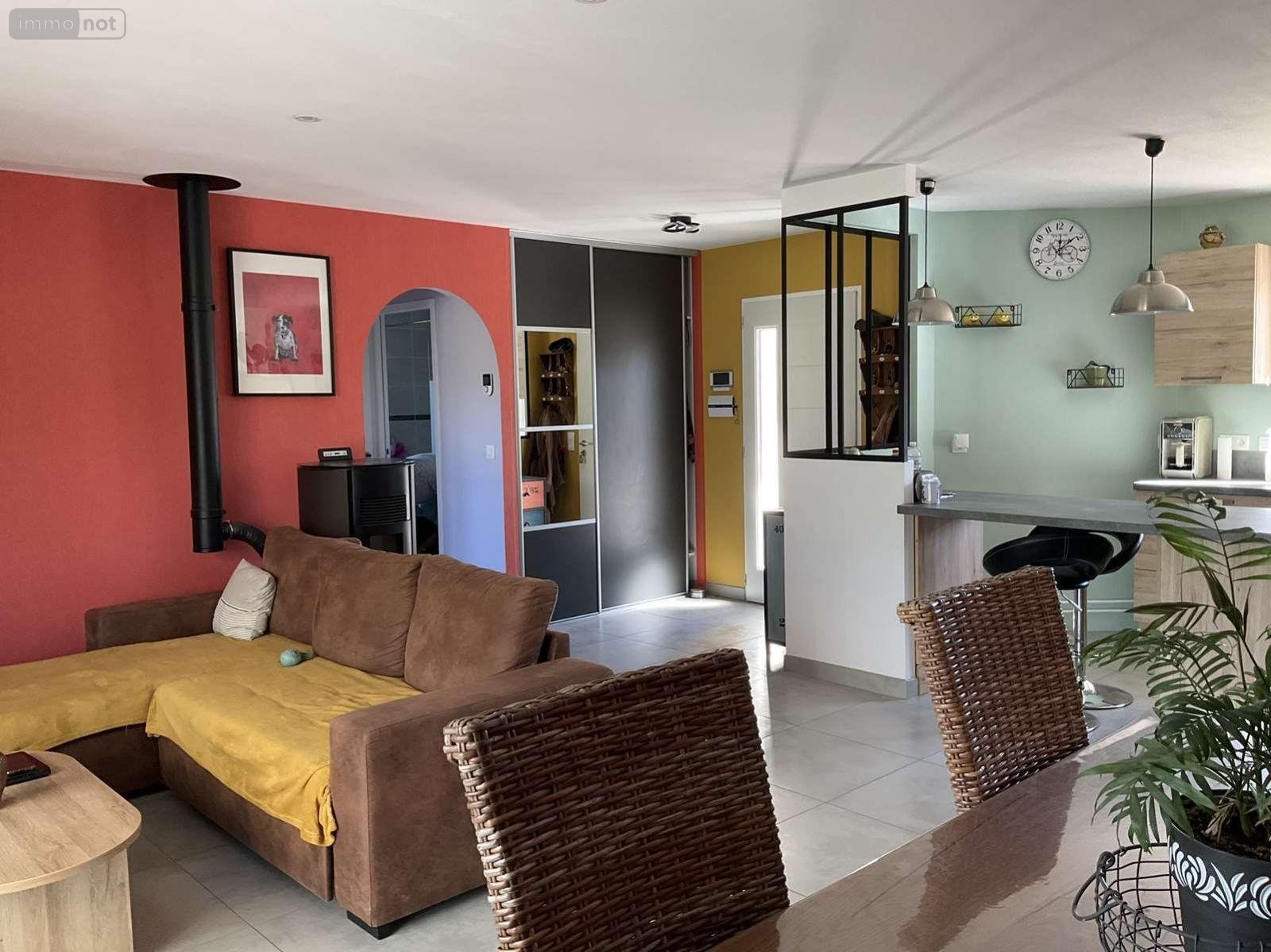 La maison comprend : grande pièce à vivre avec cuisine équipée neuve et îlot (42m²), cellier/buanderie, dégagement, trois chambres avec placard (10/10/11m²), salle de bains avec toilettes, salle d'eau, toilettes, véranda (18m²).
