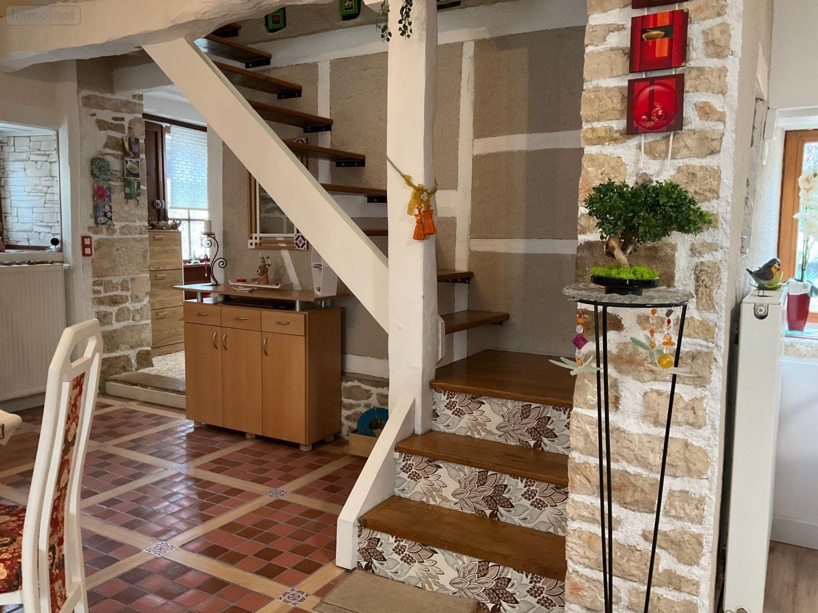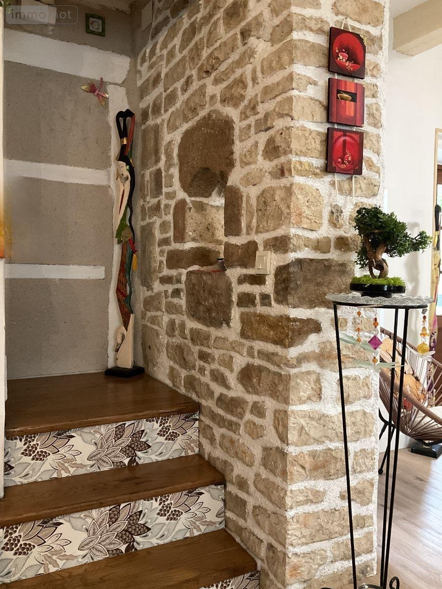 La maison comprend en rez-de-chaussée : entrée avec un beau pizé au sol, cuisine équipée (9m²), salon-salle à manger avec cheminée cantou et évier en pierre (33,50m²), toilettes.