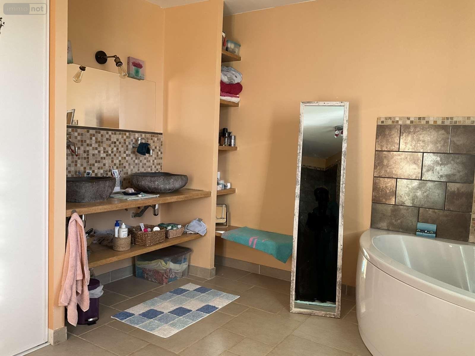 Cette maison de 132m² dispose du double vitrage aluminium avec des volets roulants électriques, d'un chauffage au sol électrique avec radiateurs à l'étage et elle est raccordée à l'assainissement collectif.