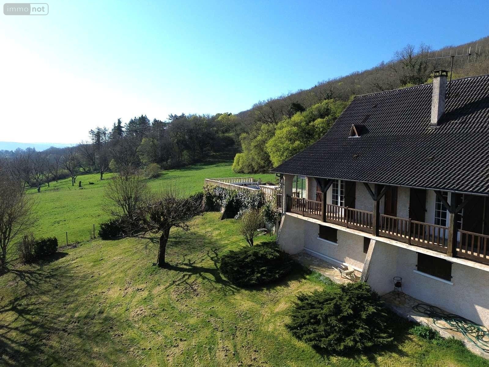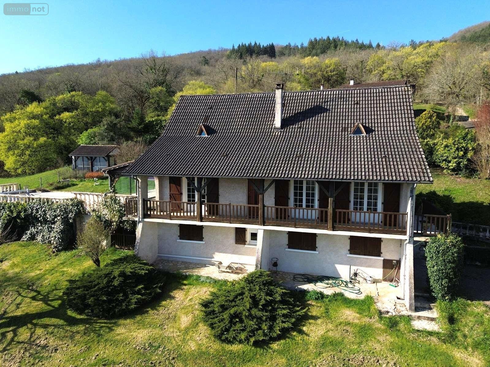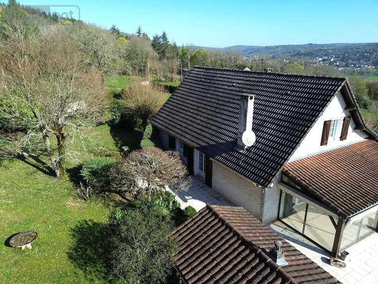 A VENDRE : Sur les hauteurs d'un village proche SOUILLAC (Lot - 46) grande maison avec très belle vue sur 3.915m² de terrain. La maison comprend en rez-de-jardin : garage avec coin buanderie, chaufferie, toilette sanibroyeur, une chambre avec douche et lavabo. Rez-de-chaussée : terrasse, véranda, entrée, pièce à vivre avec cheminée (30m²), cuisine équipée (11m²), couloir, trois chambres avec placard, salle de bains, toilettes. Etage : bureau en mezzanine, une grande pièce (40m²) transformable en chambres.