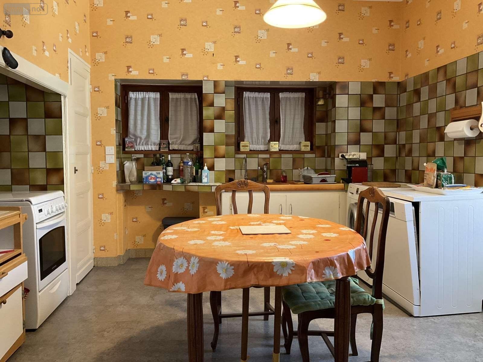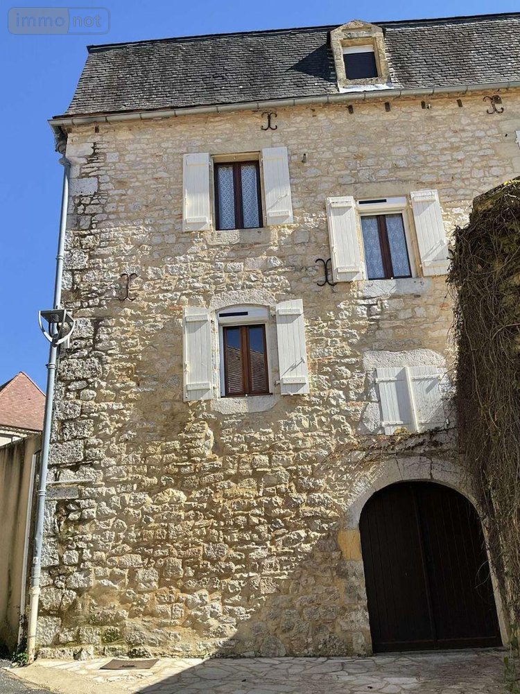 A VENDRE : Grande maison en pierre du 19ième, en bon état, avec 2 terrasses, située à environ 15km au sud de GOURDON (Lot - 46), dans village avec commerces, comprenant en rez-de-chaussée : entrée, cuisine donnant sur terrasse, salon avec cheminée insert (16,50m²), salle à manger (17m²), salle d'eau + toilettes, cellier. 1° Etage : dégagement, trois chambres (13/17/18m²), salle d'eau + toilettes, dressing. 2° Etage : dégagement, deux chambres avec placard (17/17m²) et partie grenier. Garage, cave. La maison est en bon état de gros oeuvre et offre beaucoup de possibilités avec ses 170m² et deux entrées séparées. L'intérieur est à rafraîchir. Elle dispose du double vitrage bois récent et des volets bois, d'un chauffage électrique et elle est raccordée à l'assainissement collectif.