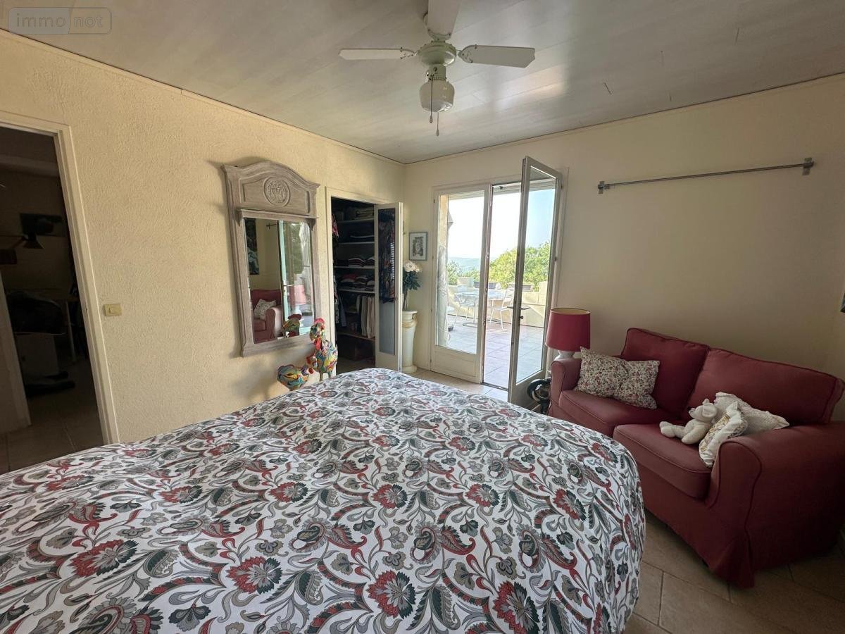 La chambre principale ouvre sur un terrasse offrant une vue panoramique sur la nature environnante.