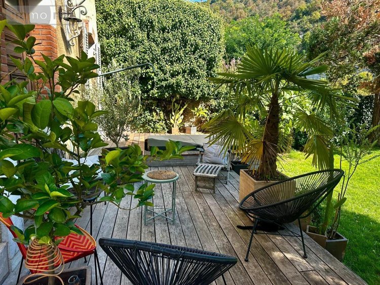 Le jardin privatif se découpe en espace terrasse, espace enherbé et jacuzzi.