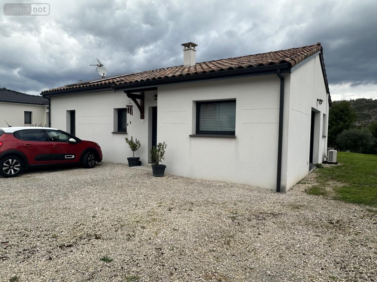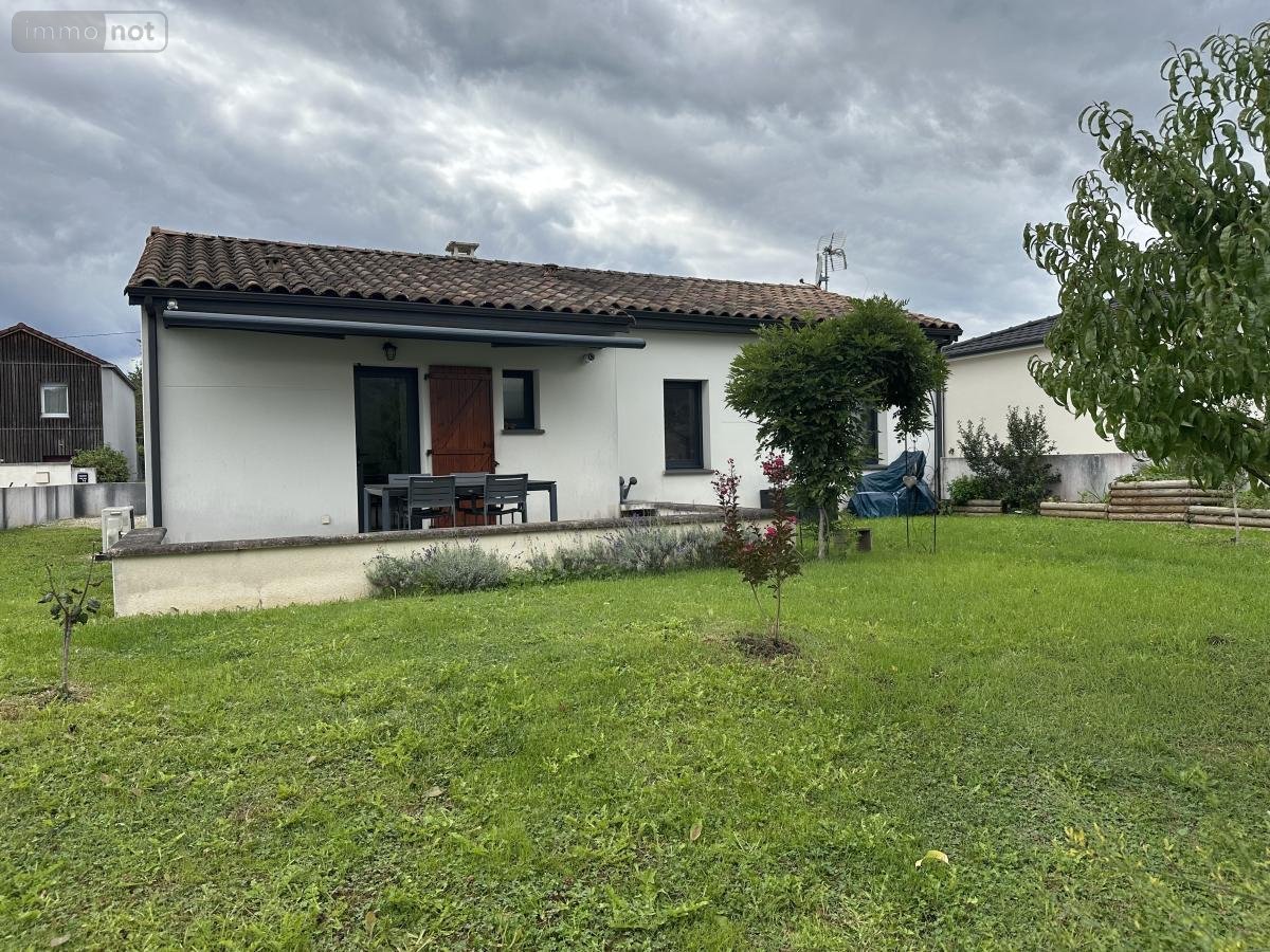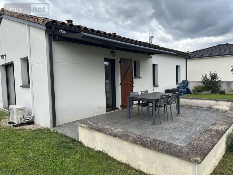 Idéalement située dans une impasse au calme, cette maison, de plain pied, se compose d'une entrée avec placard, d'un séjour ouvert, d'une cuisine meublée et équipée avec un accès direct à la terrasse, d'un cellier, de trois chambres avec placards intégrés, d'une salle de bain avec douche, baignoire et meuble double vasques, W.C. indépendant.