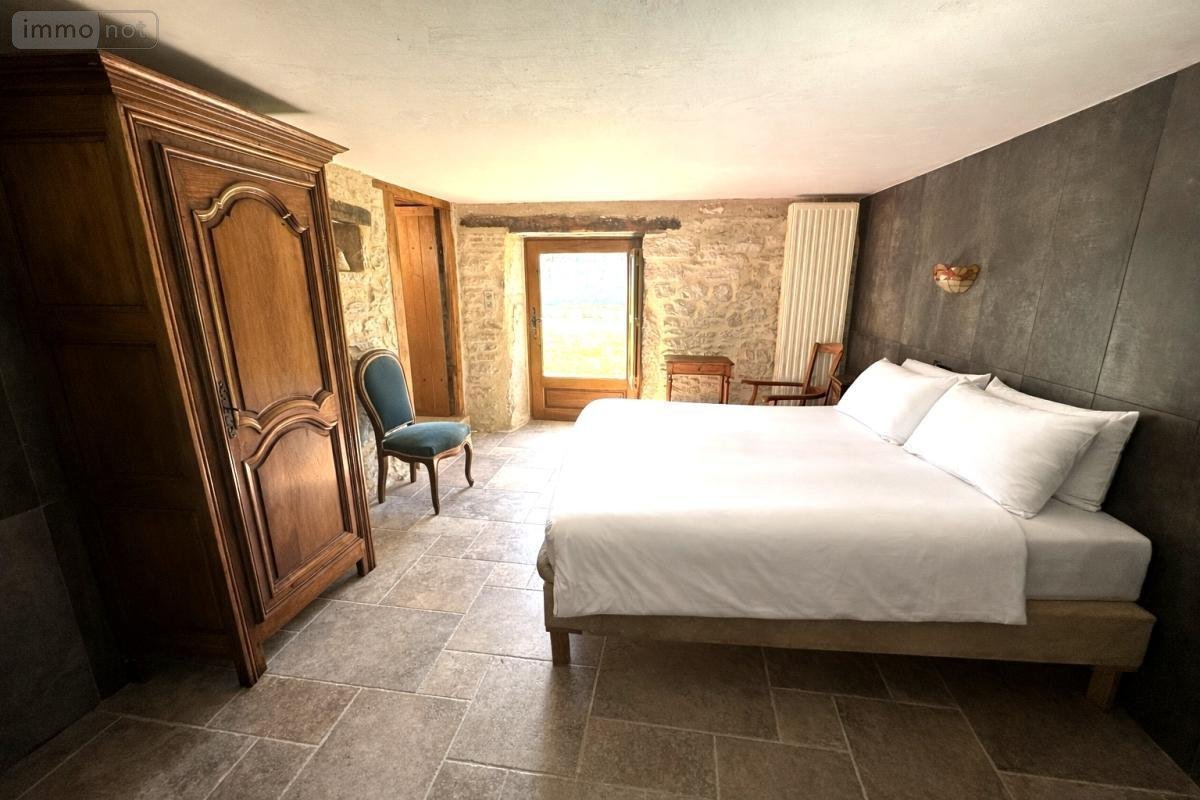 La maison prend place sur un terrain de 2.5 hectares de prairie. Elle se compose en rez-de-chaussée, d'un vaste séjour cathédrale laissant apparaitre une magnifique charpente traditionnelle, une cuisine ouverte aux meubles en bois massif et plans de travail en pierre. Les sols en travertin et les murs en pierre viennent affirmer le charme de cette pièce. Toujours en rez-de-chaussée: une chambre et sa salle d'eau et un W.C. indépendant. La cuisine offre un accès direct à la terrasse couverte.