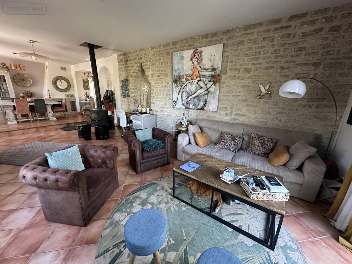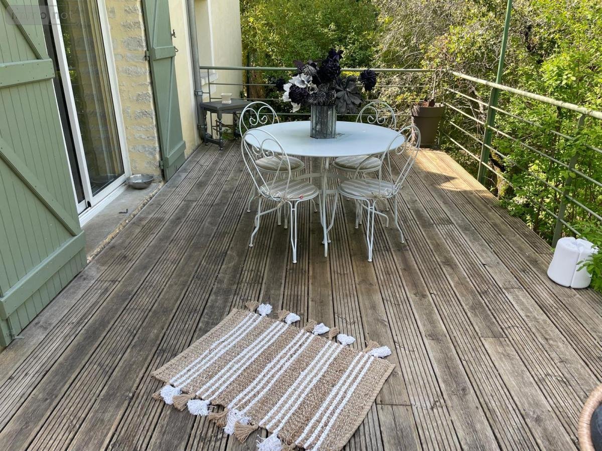Le séjour de 50m² ouvre sur une terrasse en bois côté nord et sur une terrasse spacieuse et sans vis-à-vis en travertin côté est.