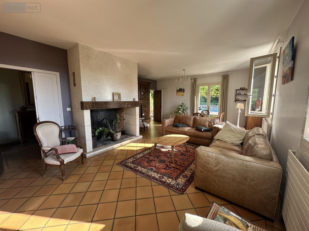 Depuis le perron, vous accédez à l'entrée puis au séjour lumineux et équipé d'une cheminée à foyer ouvert. La cuisine, meublée et équipée et le séjour offrent un accès de plein pied à la terrasse et sa piscine. Le coin nuit comprend trois chambres, une salle d'eau (douche à l'italienne et meuble double vasques) et un W.C.