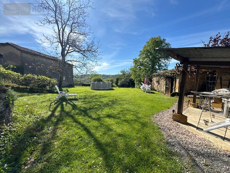 La maison bâtie sur cave, dispose au 1er niveau d'une salle à manger de plus de 23,5 m², ancienne souillarde aménagée en cuisine, salon/séjour attenant, 3 chambres avec placards, ainsi qu'une pièce supplémentaire pouvant servir de bureau, salle de bains avec WC. Les combles isolés, sont en parties aménageables. La couverture de la maison a été refaite, ainsi que les menuiseries en PVC double vitrage. La maison dispose d'un poêle à bois et de convecteurs électriques. Le jardin intime bénéficie d'une très belle vue, d'une petite dépendance d'environ 20 m² avec four à pain, idéale pour en faire un pool house. La grange principale propose une superficie de plus de 100 m² à l'étage, et celle attenante à la maison environ 47 m². Enfin une ancienne maison d'une superficie plancher d'environ 27 m² à restaurer en intégralité. Bel ensemble sur près de 3500 m² de terrain. Assainissement à prévoir. (4.29 % d'honoraires TTC à la charge de l'acquéreur.)