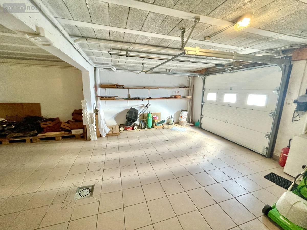 Grand garage carrelé avec porte sectionnelle motorisée