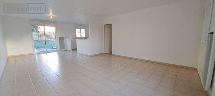 A l'étage une grande pièce de vie avec cuisine ouverte accès terrasse, dégagement, trois chambres, salle de bains, wc.