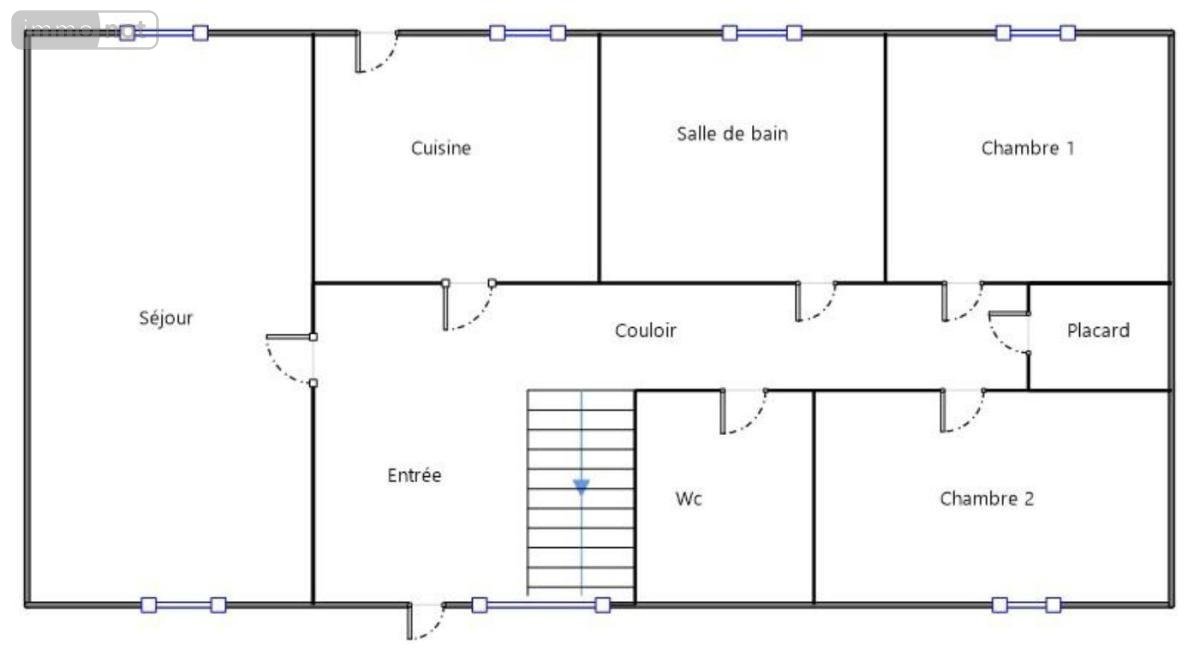 Entrée, pièce de vie, cuisine, dégagement, wc, salle de bains, deux chambres.