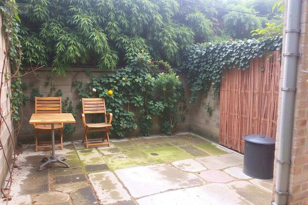Pièce de vie avec accès cour privative, cuisine aménagée, chambre avec salle d'eau et WC.