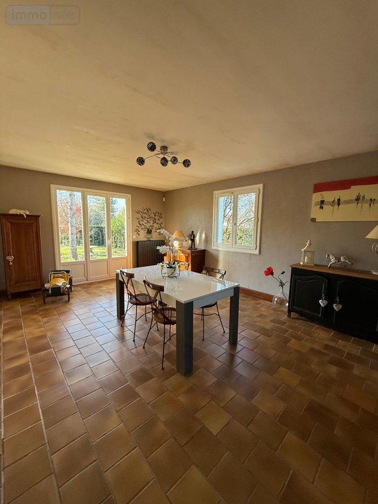 JUIGNE SUR LOIRE, maison traditionnelle de plain-pied de 1978. Elle comprend sur environ 107 m² : entrée, agréable pièce de vie de 39 m² avec cheminée, cuisine aménagée indépendante, salle de bains, trois chambres, wc ; grand comble avec potentiel aménageable ; sous-sol complet. Joli jardin clos arboré.