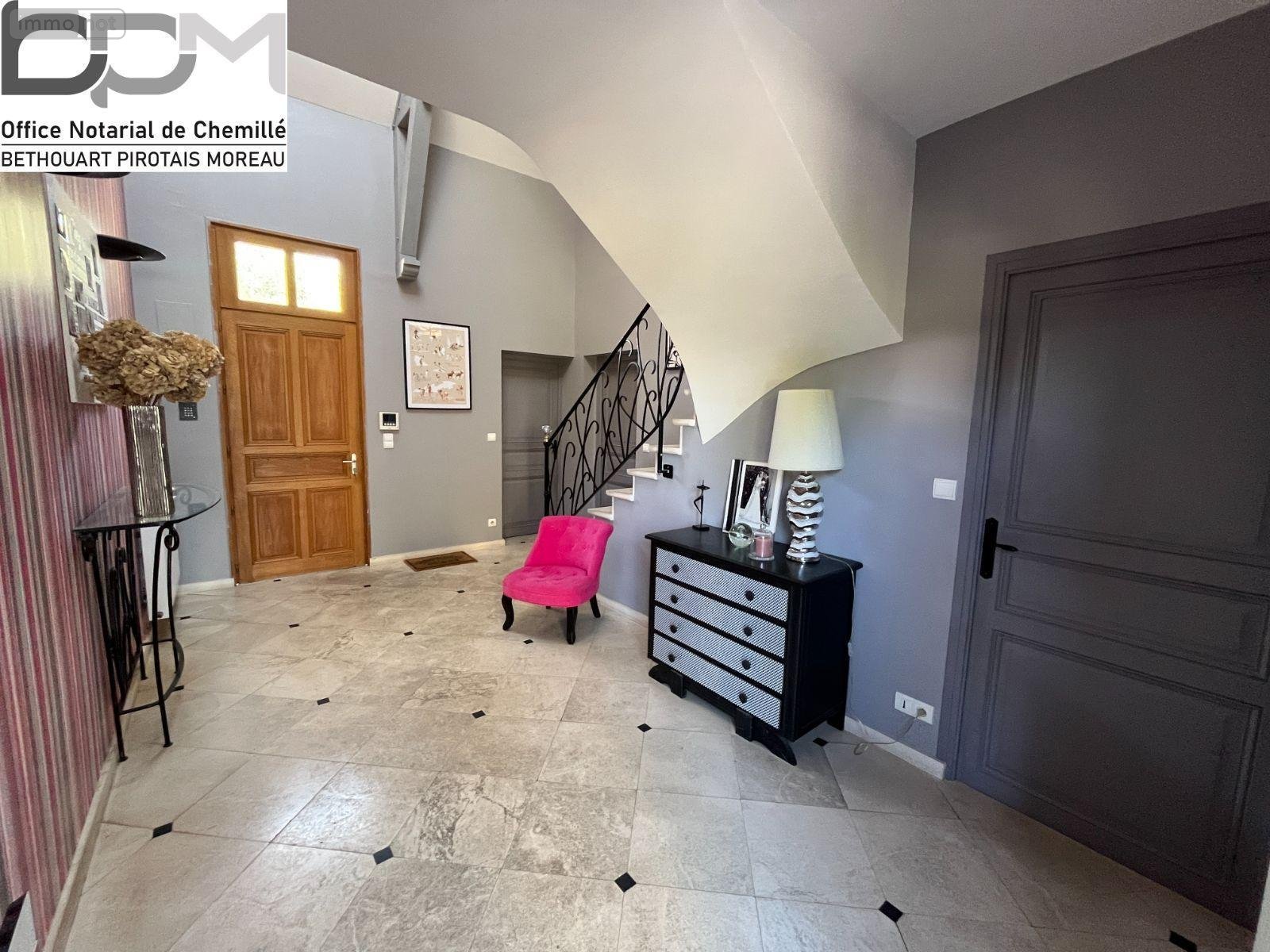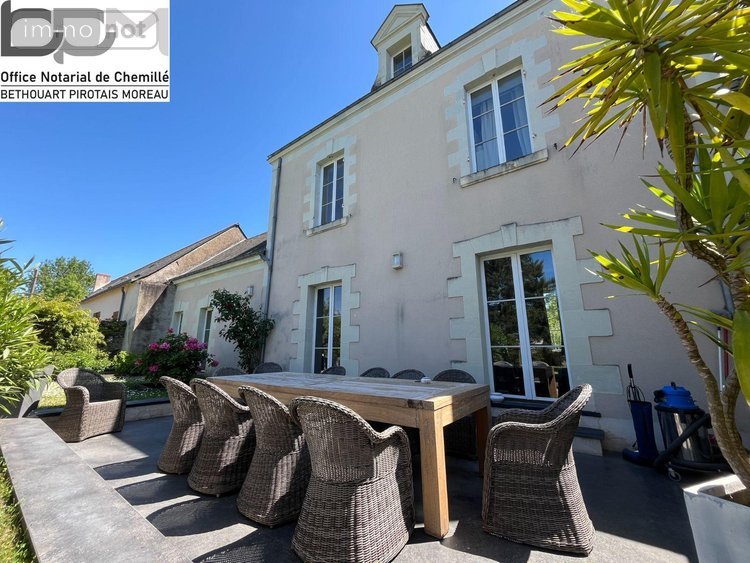 A Mûrs-Érigné, cette propriété de caractère et de charme, clos de murs, offre un cadre de vie exceptionnel, idéal pour une famille ou pour recevoir en toute convivialité. Dès l'entrée, vous serez accueilli par un beau hall d'entrée qui donne le ton de la visite, alliant élégance et authenticité. Il dessert une grande pièce de vie lumineuse, parfaite pour les réceptions familiales, avec sa cheminée chaleureuse et sa vue dégagée sur le jardin paysager avec piscine. En rez-de-chaussée, une suite parentale confortable vous attend, comprenant sa propre salle d'eau privative, ainsi qu'un salon, une salle à manger et une cuisine conviviale au charme authentique. À l'étage, vous trouverez quatre chambres, toutes accompagnées de leur salle d'eau et WC, garantissant confort et intimité à chacun. Côté extérieur, un préau ainsi qu'un garage ouvert viennent compléter ce bien rare sur le secteur. Une propriété exceptionnelle, alliant caractère, espace et luminosité, à découvrir sans tarder. Ne manquez pas cette occasion unique ! Pour plus d'informations ou pour organiser une visite, contactez-nous dès maintenant !