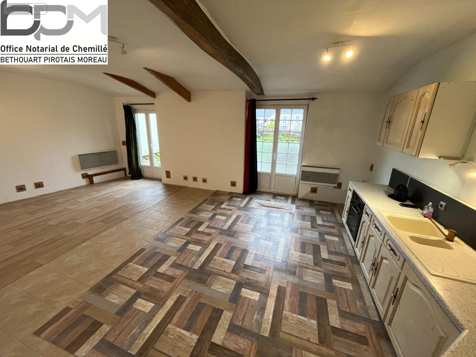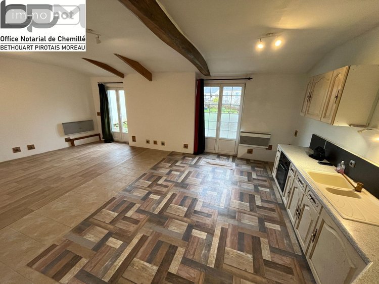 À vendre Maison à Neuvy-en-Mauges, Chemillé-en-Anjou. Charmante maison d'une surface habitable de 150 m² sur un terrain de 592 m², offrant de beaux volumes et un agencement fonctionnel. Au rez-de-chaussée : bureau, salon, cuisine ouverte sur séjour avec accès direct au jardin, lingerie, atelier et WC. À l'étage : palier, grenier aménageable et trois chambres. Idéale pour une famille recherchant confort, espace et potentiel d'aménagement. Pour plus d'informations ou visite, contactez l'Office Notarial de Chemillé.