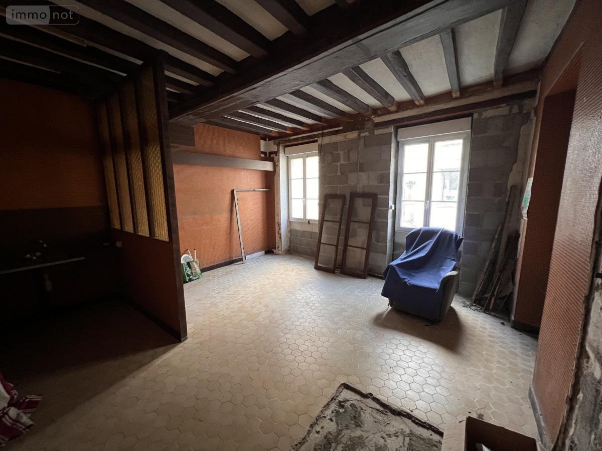 Maison ancienne au coeur du village de Jarzé qui comprend au rez-de-chaussée une entrée avec départ d'escalier, une salle à manger avec cheminée, un salon, une cuisine et un WC puis une pièce (ancien magasin). cave en-dessous.
