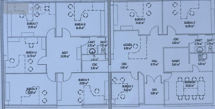 Le bien comprend un hall d'entrée avec espace accueil , une salle de réunion, un coin cuisine, un espace informatique, des sanitaires, sept bureaux, des sanitaires PMR.