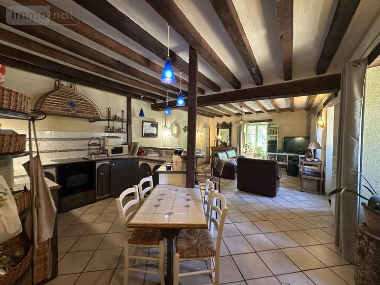 - Au rez-de-chaussée : un séjour avec cuisine aménagée et équipée, un salon avec poêle à bois, une véranda, un dégagement, WC avec lave-mains, une véranda, un second dégagement, un bureau, une pièce avec point d'eau, une chambre avec placard et une salle de douche avec WC. arrière-cuisine/cellier accessible par la cuisine avec remise et bûcher