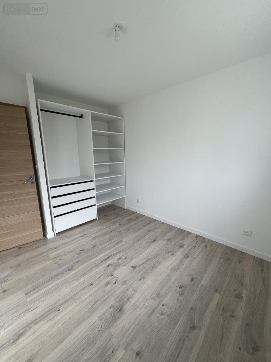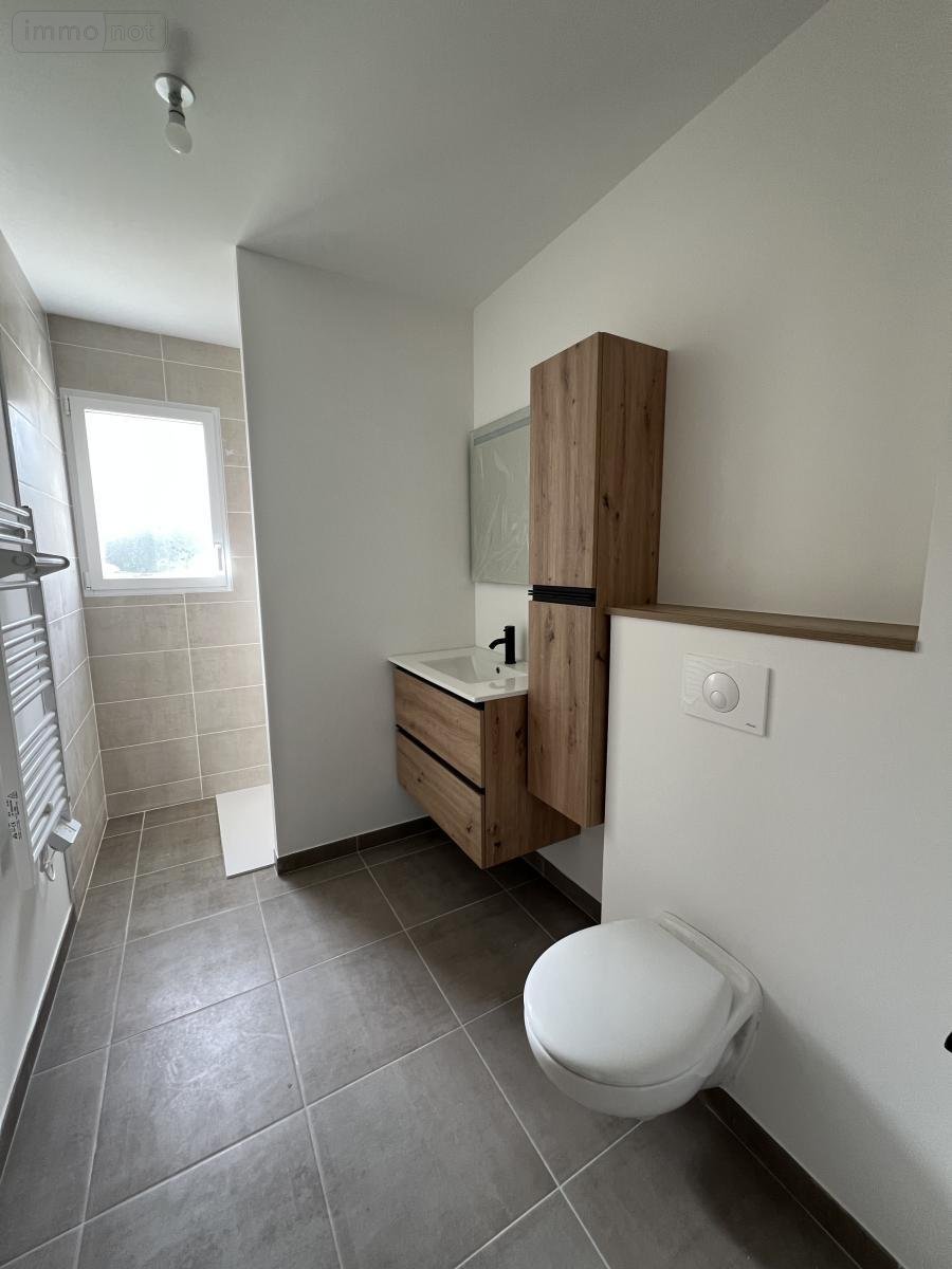 Maison de plein pied normes PMR entièrement neuve de 67m² à louer à Saint-Germain-des-Prés, loyer de 850€ charges non comprises, comprenant une entrée sur salon séjour, une cuisine aménagée et équipée d'un four, d'une hotte et d'une plaque de cuisson, une salle d'eau avec WC.