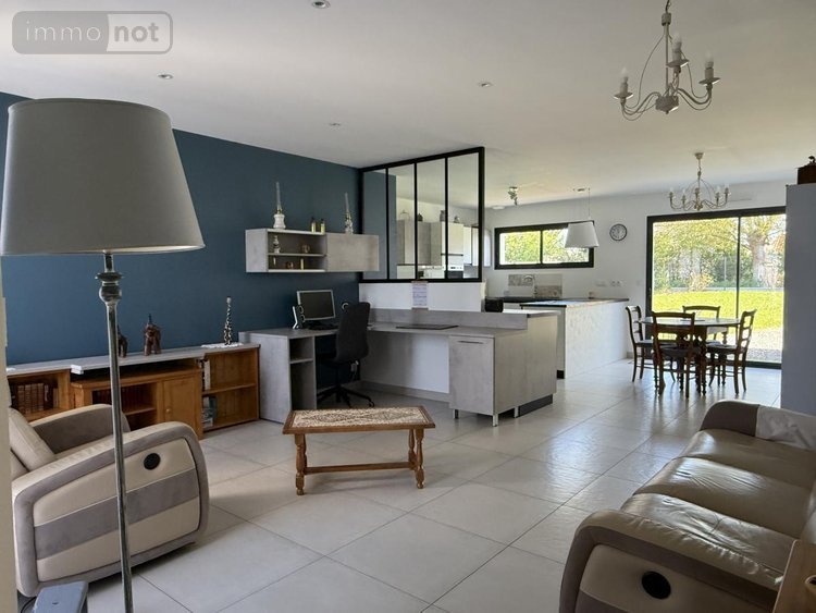 Réf. 1481 - LE MAY-SUR-EVRE. Maison traditionnelle de PLAIN-PIED, édifiée en 2021 sur une parcelle de plus de 500 m². Sur 115 m² habitables en parfait état, vous trouverez une grande pièce de vie traversante avec espace bureau meublé, une cuisine aménagée, une arrière-cuisine, la suite parentale avec une grande chambre, dressing et pièce bain puis trois autres chambres avec leur salle-de-bain. Garage et cabanon de jardin sur dalle béton. Charmant jardin clos exposé SUD donnant sur un chemin bordé de beaux arbres. Logement normé PMR (Personnes à Mobilité Réduite). 270.000 € + frais de négociation 12.480 € TTC (soit 4,62 % TTC du prix net vendeur, à la charge de l'acquéreur). Logement éligible à la nouvelle réglementation du DPE : CLASSE ENERGIE B (50 kWh/m²/an) - GES B (9 kg CO²/m²/an).