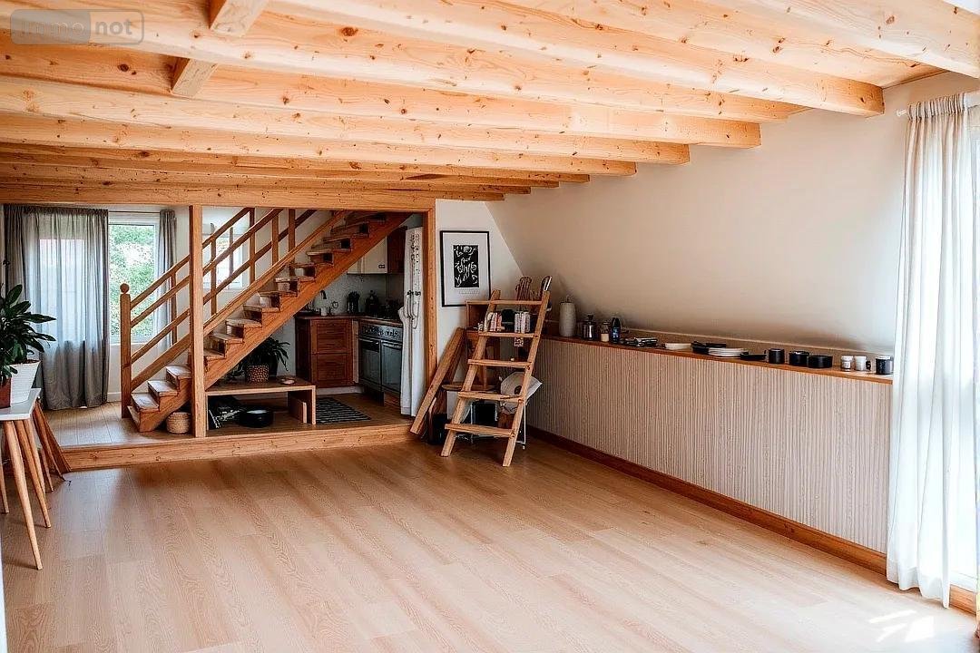 - étage : une petite mezzanine et deux pièces en enfilade (deux chambres possibles).