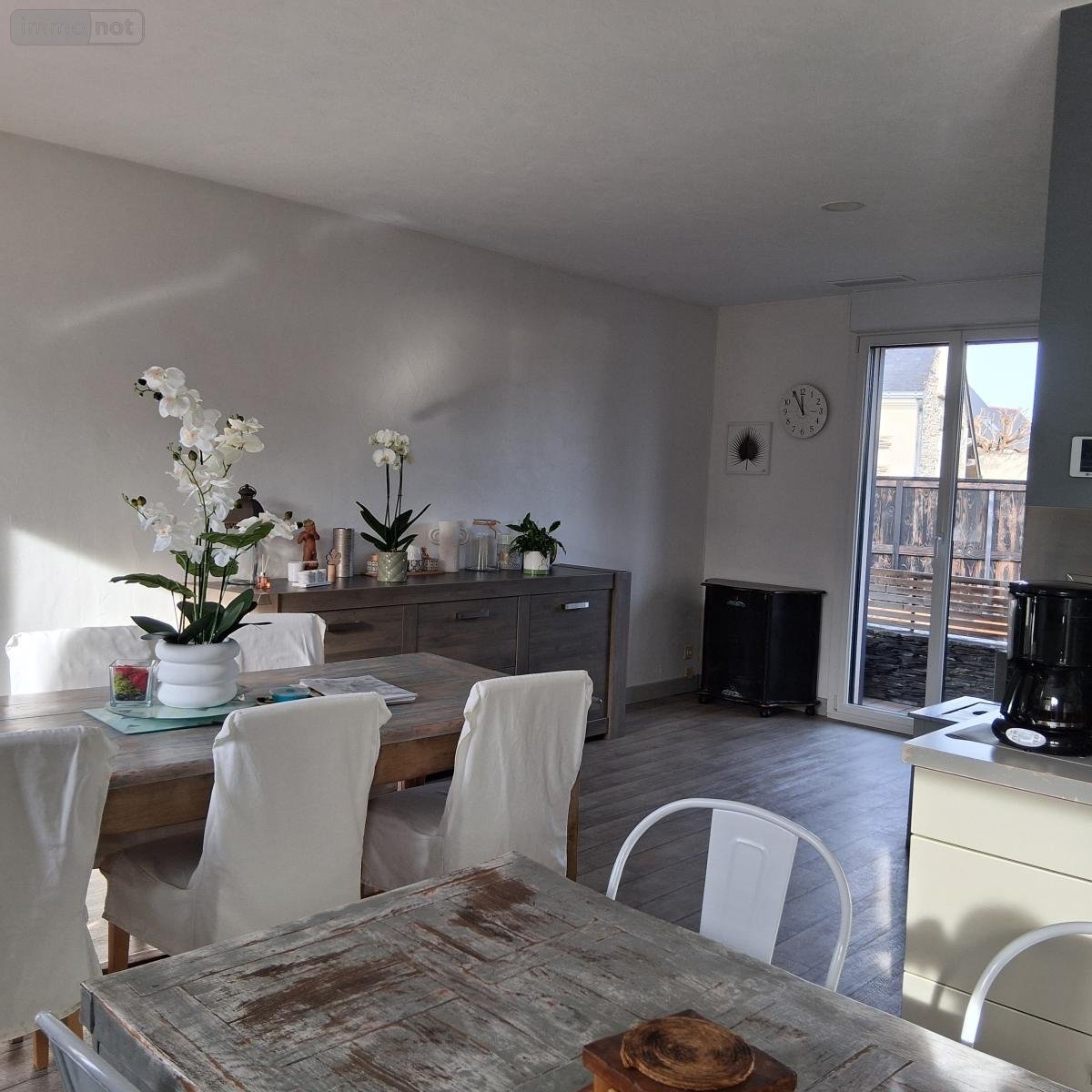 A VENDRE LOIRE-AUTHION (49630), Corné - Centre bourg, une maison d'habitation de plain-pied comprenant entrée avec placard, séjour-salon - cuisine équipée (36 m²), trois chambres, salle de bains, wc. Garage. Abri fermé avec cheminée, préau, abri bois et atelier. Tout à l'égout, Puits, arrosage automatique, portail motorisé, pompe à chaleur réversible. Terrain de 684 m².